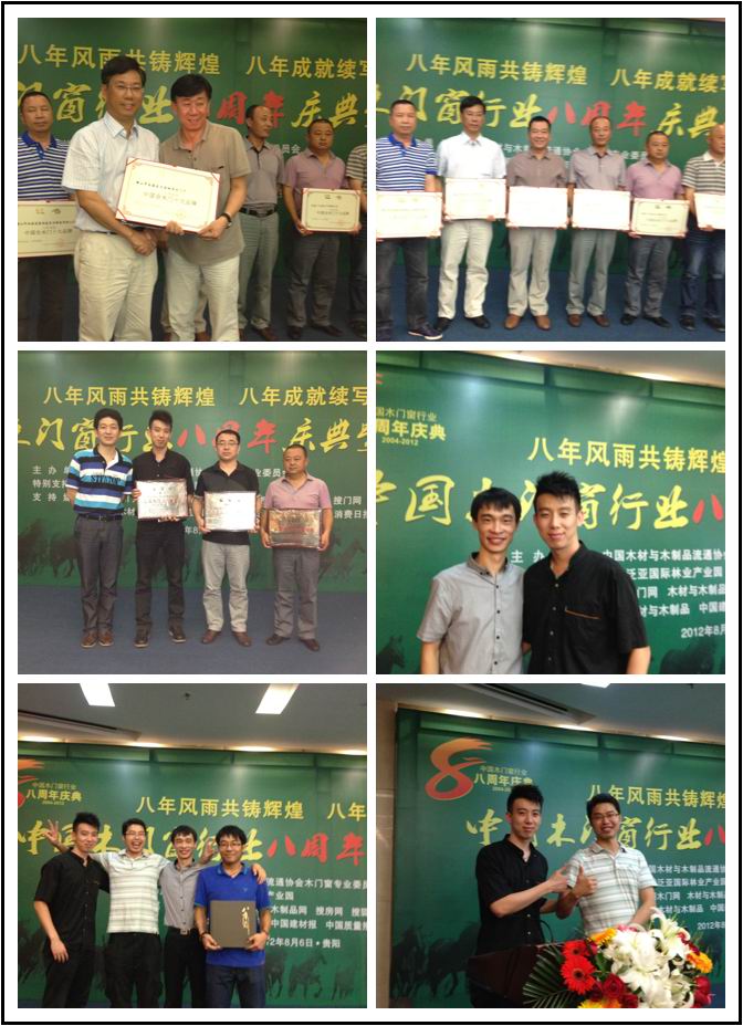 2012年8月6日,中國(guó)木門窗行業(yè)8周年慶典暨表彰大會(huì)在貴陽(yáng)嘉華酒店如期舉行。中國(guó)木材與木制品流通協(xié)會(huì)會(huì)長(zhǎng)劉能文,中國(guó)木材與木制品流通協(xié)會(huì)木門窗專業(yè)委員會(huì)會(huì)長(zhǎng)張國(guó)林,中國(guó)木材與木制品流通協(xié)會(huì)木門窗專業(yè)委員會(huì)秘書長(zhǎng)王永林,中國(guó)木材與木制品流通協(xié)會(huì)木門窗專業(yè)委員會(huì)常務(wù)副秘書長(zhǎng)謝春林及各企業(yè)代表參加本次會(huì)議。佛山樹興木門廠作為協(xié)會(huì)的理事單位成員也參加了此次會(huì)議。會(huì)上,本廠榮獲協(xié)會(huì)頒發(fā)的“中國(guó)全木門十大品牌”稱號(hào),可謂實(shí)至名歸。另外,樹興西安紅星店和寧波永達(dá)店更是榮獲協(xié)會(huì)頒發(fā)的“中國(guó)木門行業(yè)星級(jí)店”的光榮稱號(hào)。本廠產(chǎn)品“風(fēng)生水起”也榮獲2012中國(guó)木門(嘉寶莉杯)設(shè)計(jì)大賽“最受消費(fèi)者歡迎款式”之稱。